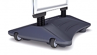 OUTDOOR STOPP trotzt Wind und Wetter. Die Federn zwischen Fuß und Rahmen machen ihn flexibel und auch bei starkem Wind standsicher, Moosgummi und Antireflexfolie schützen die Drucke vor Wasser. Der Fuß ist mit Wasser oder Sand befüllbar und gibt zusätzliche Standfestigkeit - trotzdem ist er durch seine Rollen mobil und lässt sich leicht positionieren.