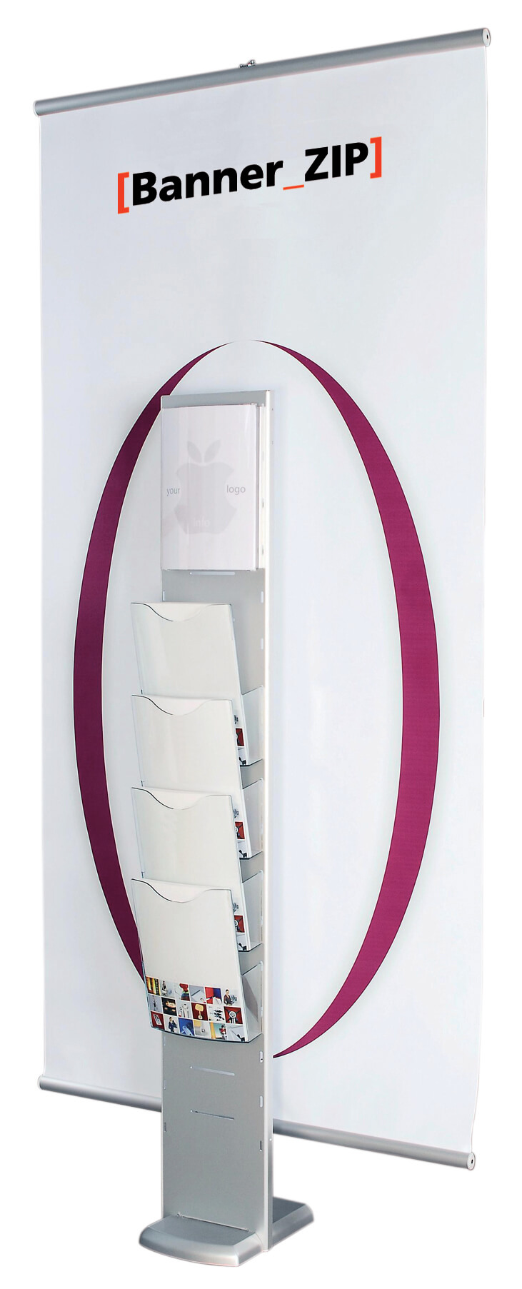 Ob als Verkaufsdisplay mit Ablagen oder als aufmerksamkeitsstarker Prospektständer, Banner ZIP ist die richtige Wahl.