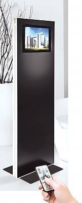 Mit seiner fortschrittlichen Ausstattung vereint dieses System die standortflexible Werbewirksamkeit herkömmlicher Displays mit den Vorzügen aus dem Multimediabereich: bewegte Bilder und Sound. Für die audiovisuelle Präsentation kommt INFO STAND Media in elegantem Schwarz daher - der Standfuß ist Schwarz pulverbeschichtet, die schwarzen Alu-Verbundplatten mit integriertem schwarzen LCD-Bildschirm werden von edlem Silber (eloxiertes Aluminium) eingerahmt. Optional sind Prospekthalter und Displaybars erhältlich.