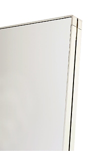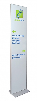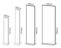 Das System besteht aus einem silbernen Standfuß und zwei doppelseitigen Alu-Verbundplatten in Silber oder Weiß matt. Diese befinden sich in einem stabilen silbernen Profilrahmen. Sie haben die Wahl, ob Sie nur die Vorderseite mit einem Druck versehen oder auch die Rückseite. Optional lassen sich ganz einfach mit einem Verbinderset Prospekthalter, Displaybars, Regalbretter oder eine Kopfplatte über mehrere Einzelsysteme anbringen.
