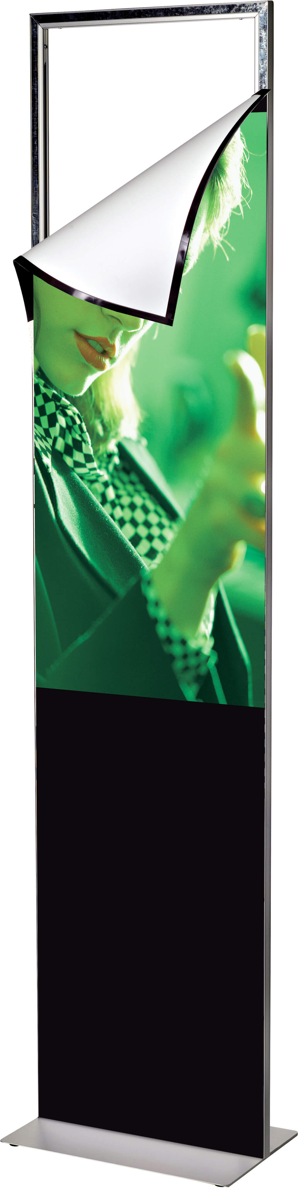MAGNETIC FRAME ist ein doppelseitiger Rahmen für rollbare, leicht zu transportierende Panels. Die Drucke werden beidseitig einfach durch Magnetstreifen angebracht und von einem schmalen Aluminiumstreifen eingerahmt. Der flache Fuß gibt der Grafik eine edle Basis. MAGNETIC FRAME ist in vier Größen erhältlich.