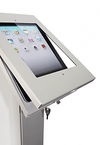 eye PAD iP02 ist die optimale Lösung für diebstahlsichere interaktive Präsentation - das Schloss und die Abdeckung der iPad-Steuerungstasten verhindern den unbefugten Zugriff. Das Display kann um 90° für den horizontalen und den vertikalen Einsatz mittels einer in der Halterung integrierten Schraube gedreht werden. Das eye PAD iP02 ist in Schwarz und in Silber erhältlich. eye PAD iP02 ist kompatibel mit iPad 1, iPad 2, iPad 3 und iPad 4 (ausgenommen iPAD Air).