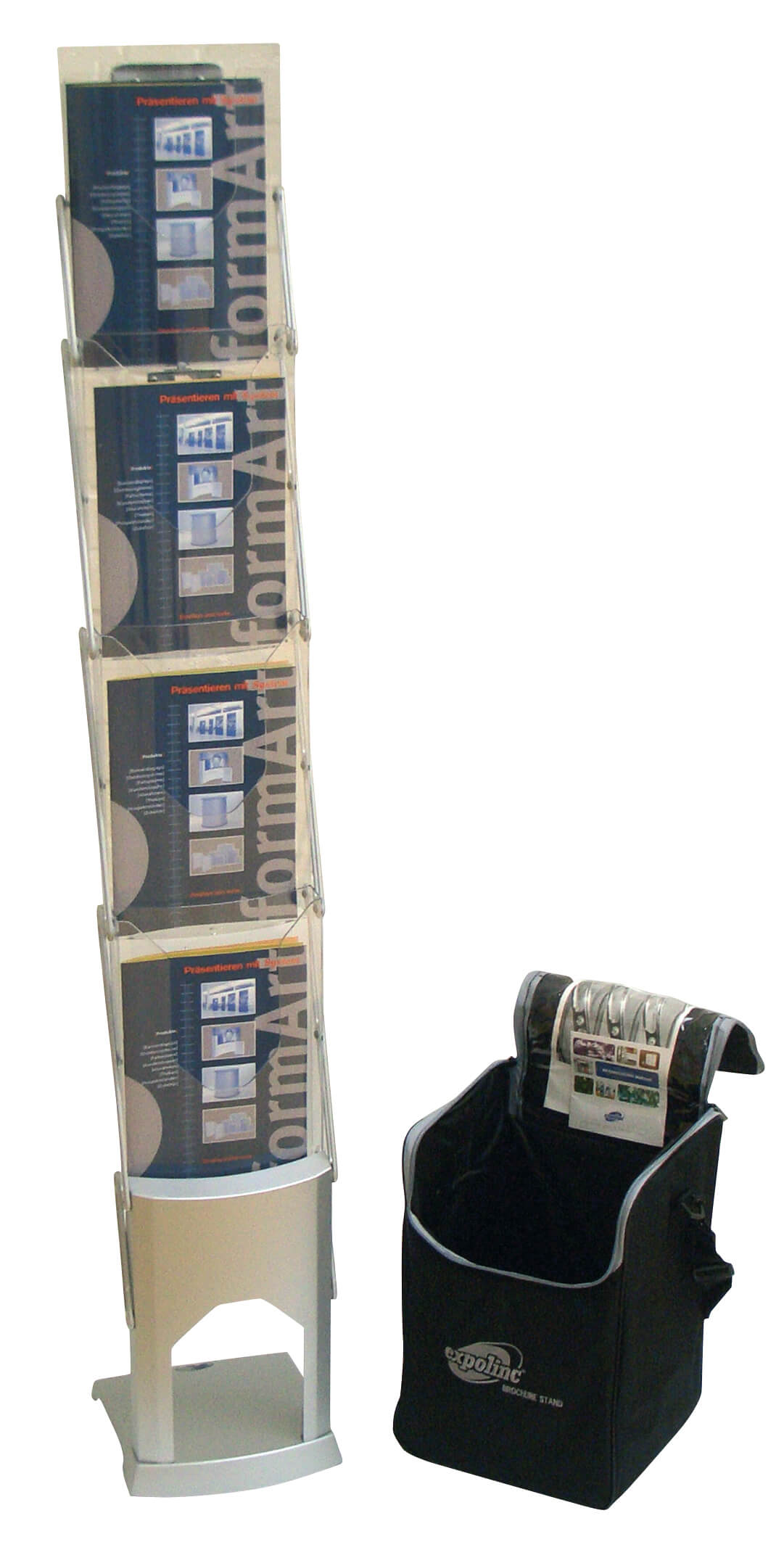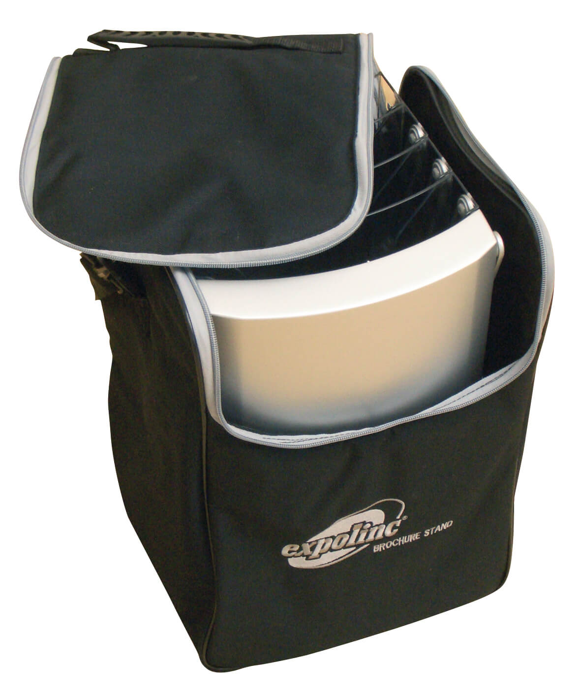 Während des Transportes in der gepolsterten Tasche verbleiben die Werbematerialien in den Fächern, sind so bestens geschützt und jederzeit wieder einsatzbereit.
